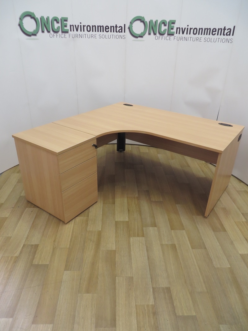 Desks - Beech 1600 x 1200 Left Hand Panel End Workstation. 49 IN STOCK.